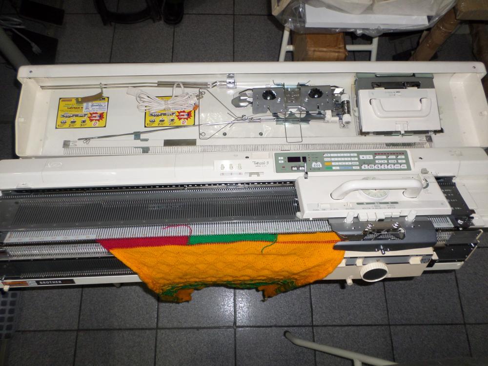 Maquina de tejer marca Brother modelo TOPICAL KH-940 (para lana de madeja - Galga 5), con memoria electrónica (realiza dibujos en dos colores, retenidos, punto saltado, calados), libro de patrón de diseños, transformador de corriente de 110 Volt. (USA.) a 220 Volt. (PERÚ.)    Con pretinadora marca Brother modelo KR-838, mueble y accesorios completos.